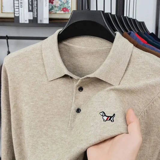 Men's Waffle Long Sleeved POLO Shirt with Letter Printed Lapel Casual Top
