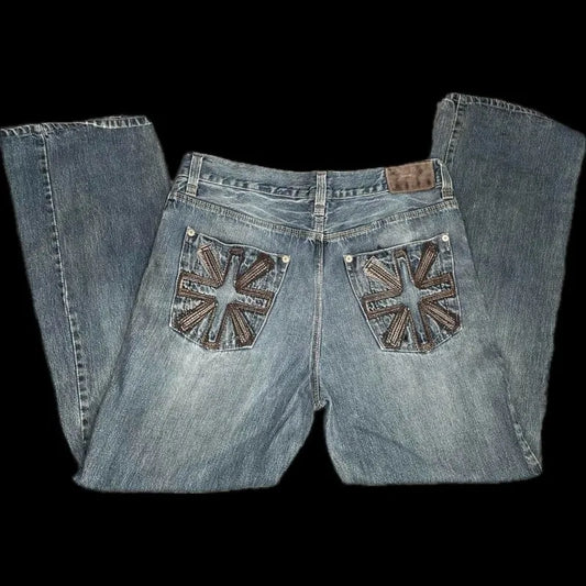 Y2K Wide-Leg Embroidered Jeans