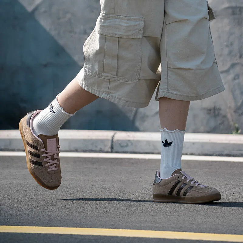 The Adidas Gazelle Leather Indoor shoes are your perfect partner for fitness training and casual outings. Designed for both men and women, these unisex shoes combine style and functionality, ensuring that you can perform at your best while looking great.
