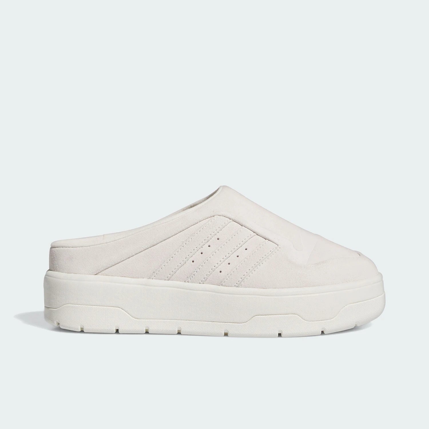 These Adidas women's thick-soled mule sandals IG2232 combine an elevated sole profile with a polyester upper to deliver added cushioning and easy care. The slip-on low-ankle silhouette is designed for casual daily wear and quick on/off convenience.