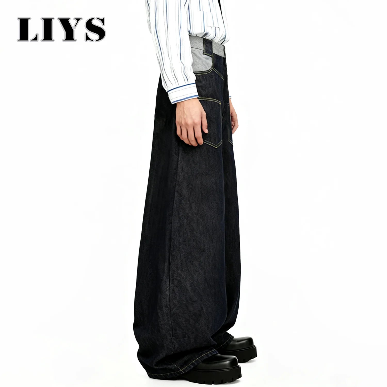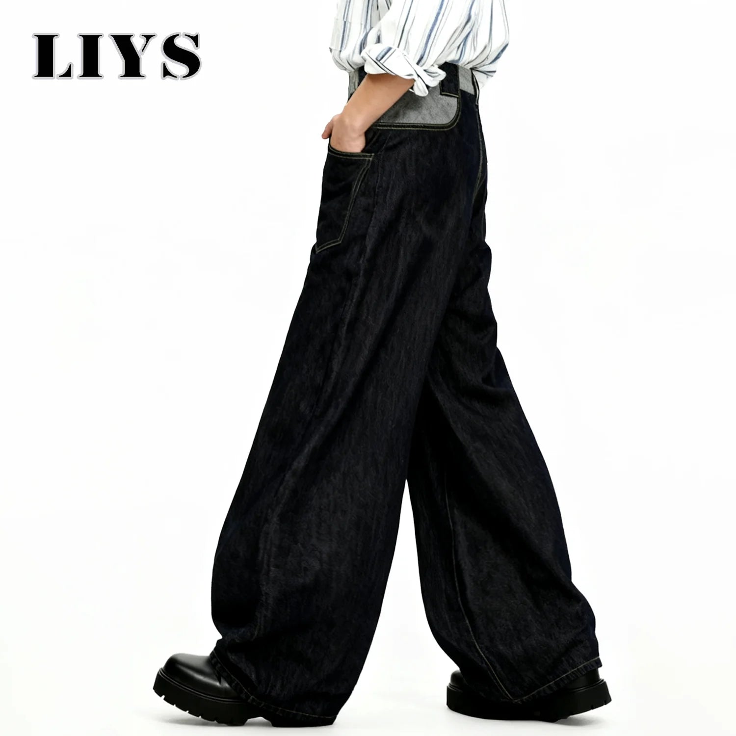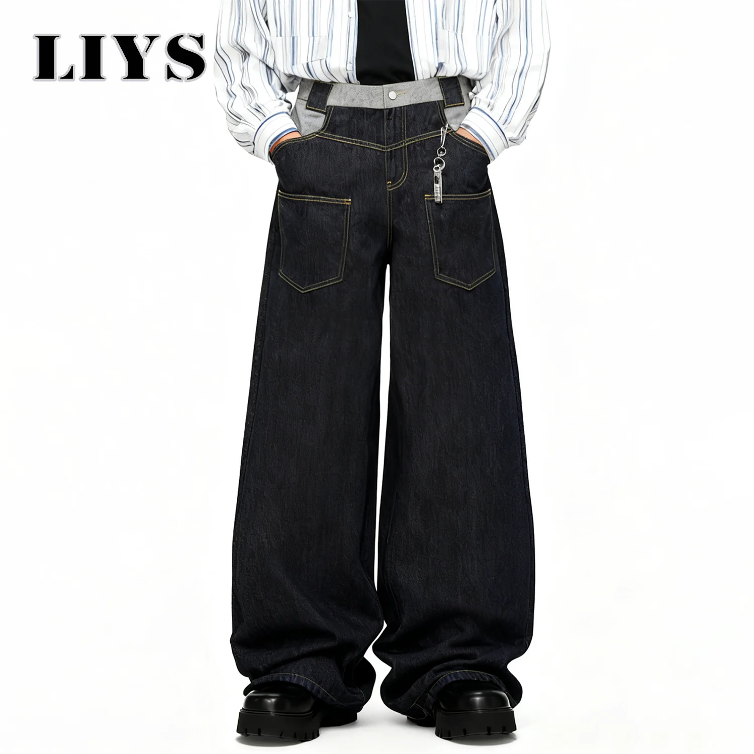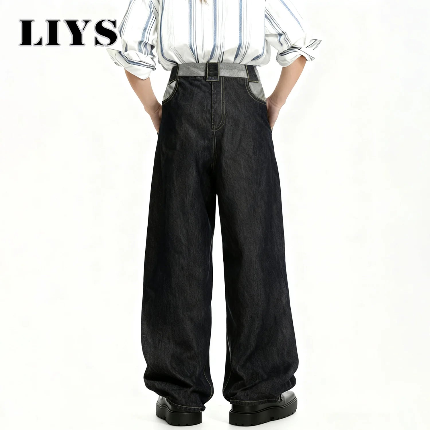 If you struggle with restrictive skinny or tapered jeans this full-length loose fit gives you room through the thigh and hem so you can move comfortably while keeping a structured silhouette. The contrast gray waistband panels and spliced construction provide a distinctive American retro streetwear look.