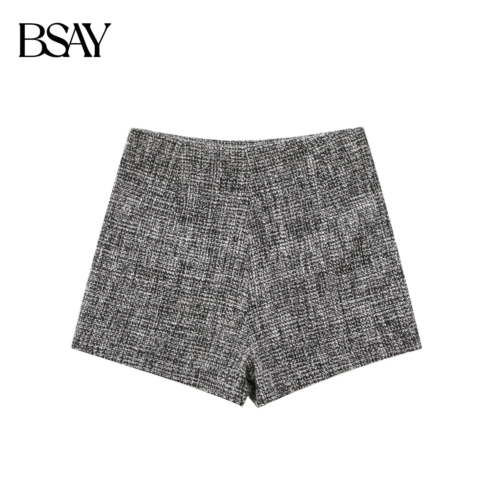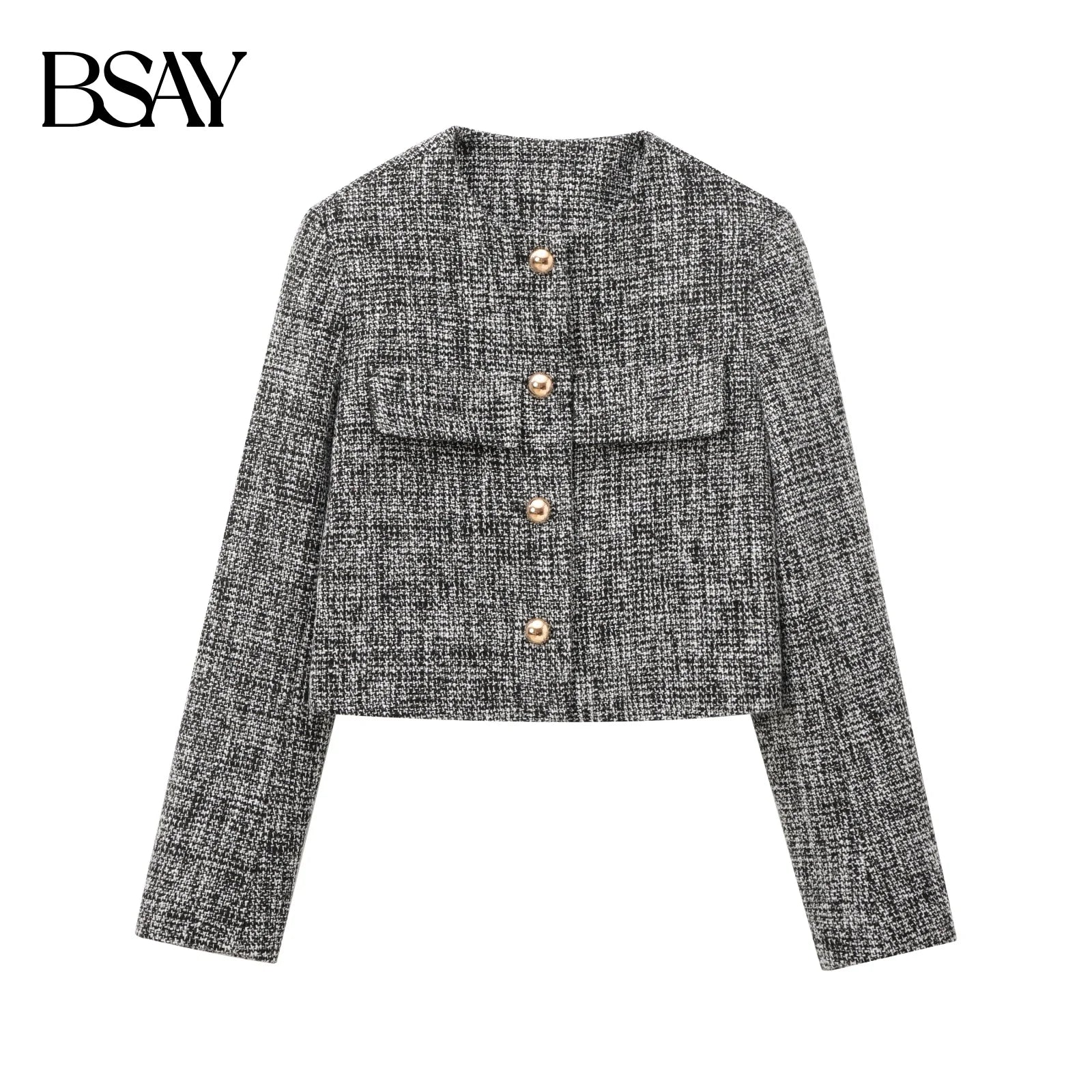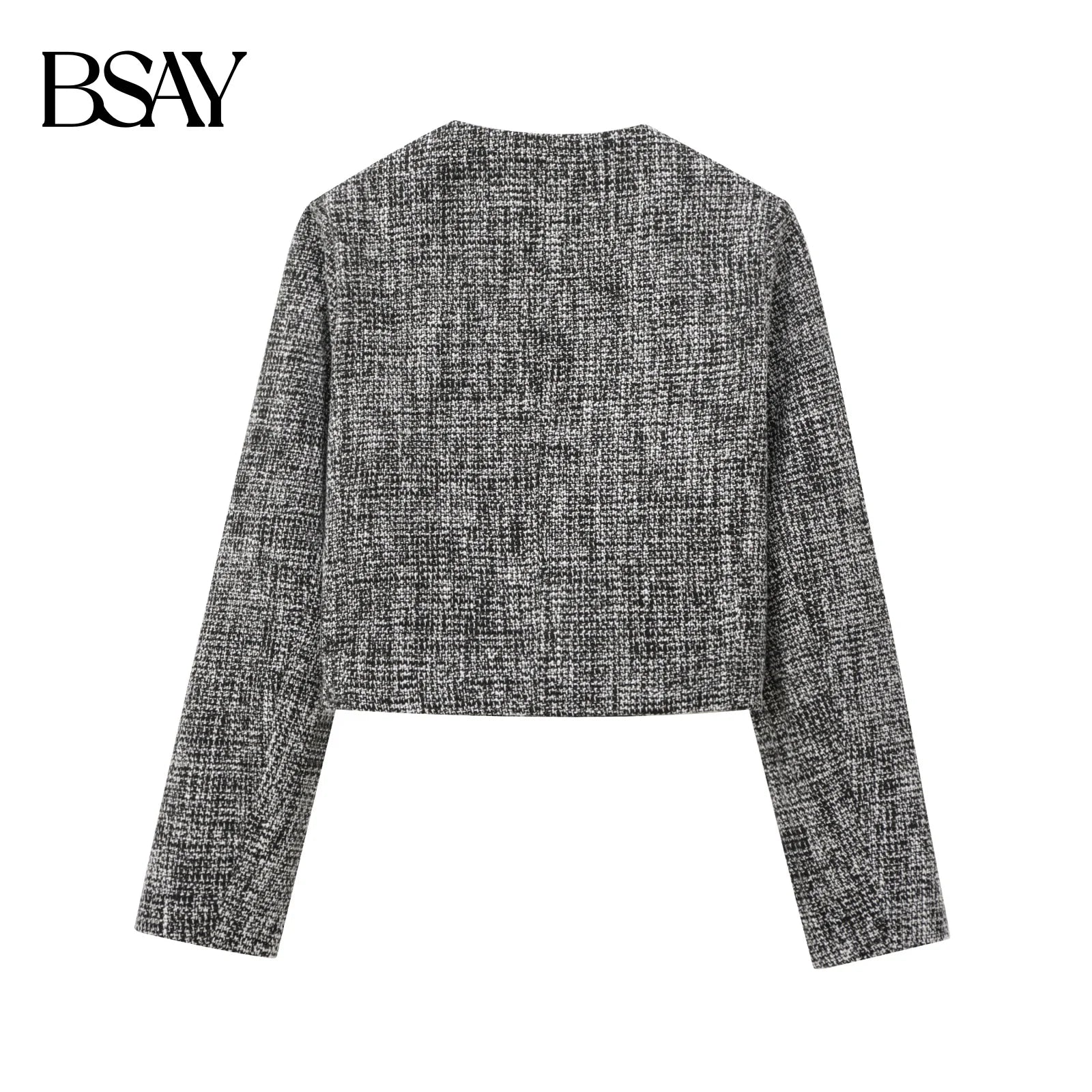 This BSAY women's polyester two-piece short suit set pairs a single-breasted long-sleeve round-neck jacket with a high-waist shorts/skirt to deliver a structured office silhouette and mix-and-match versatility.