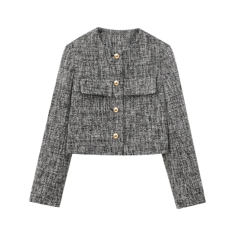 - Single-breasted jacket closure O-neck round collar full sleeves