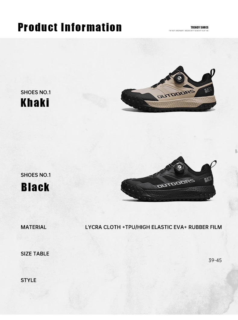 Whether you're a seasoned hiker or a weekend explorer, the CHRLCK Rotary Buttons Men's Hiking Shoes offer the perfect blend of function and style. Take on any terrain with confidence, knowing your feet are protected and supported every step of the way.