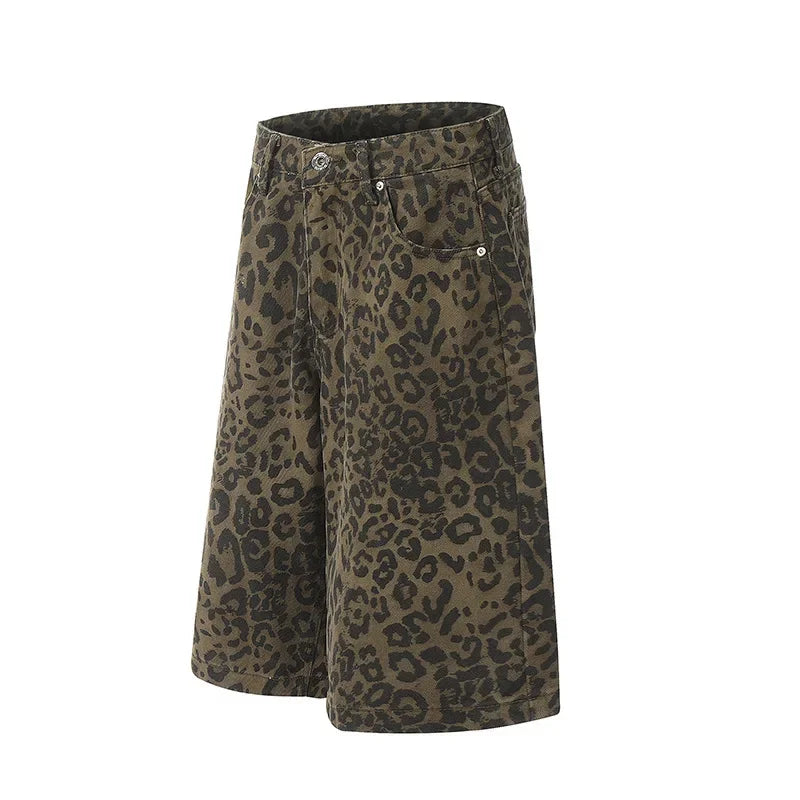 Leopard Denim Wide-Leg Jorts
