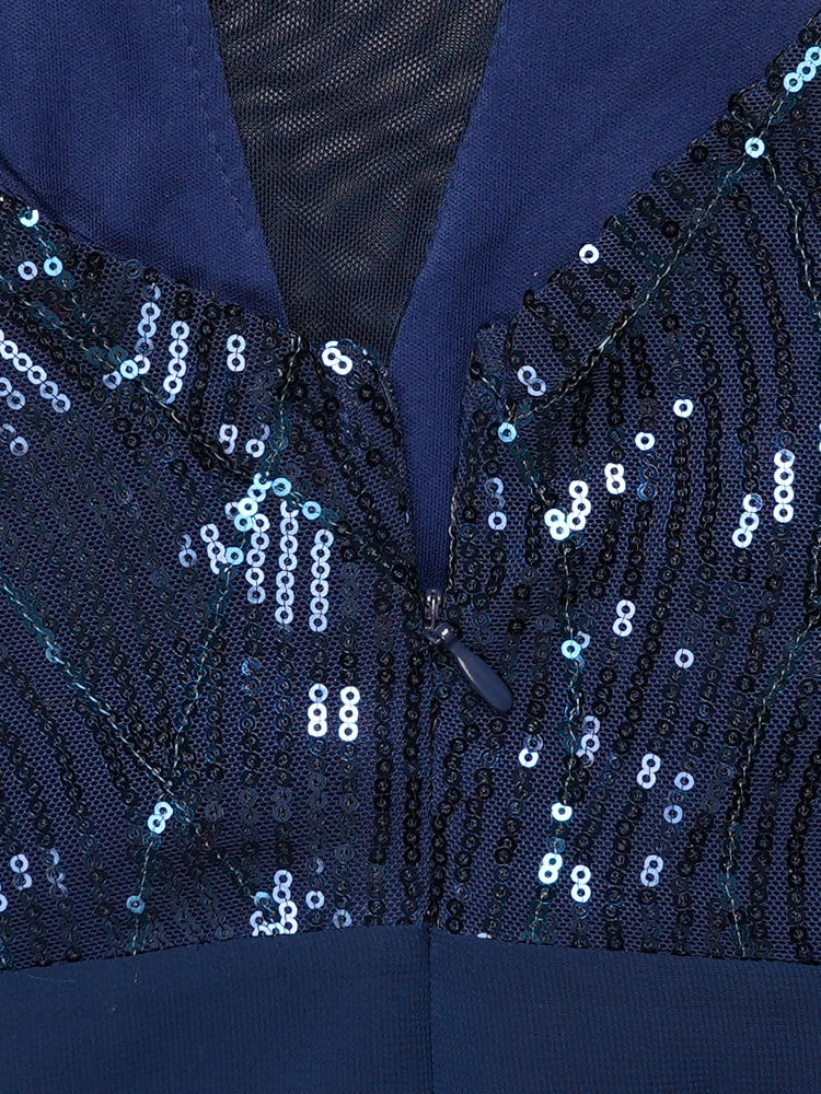 If you struggle to find formalwear that balances coverage and drape this style helps by using lightweight chiffon with a regular non-stretch fit to keep the skirt flowing without clinging. Sequins are applied in patchwork areas to add visual detail while the O-neck and full sleeves maintain a conservative cut.