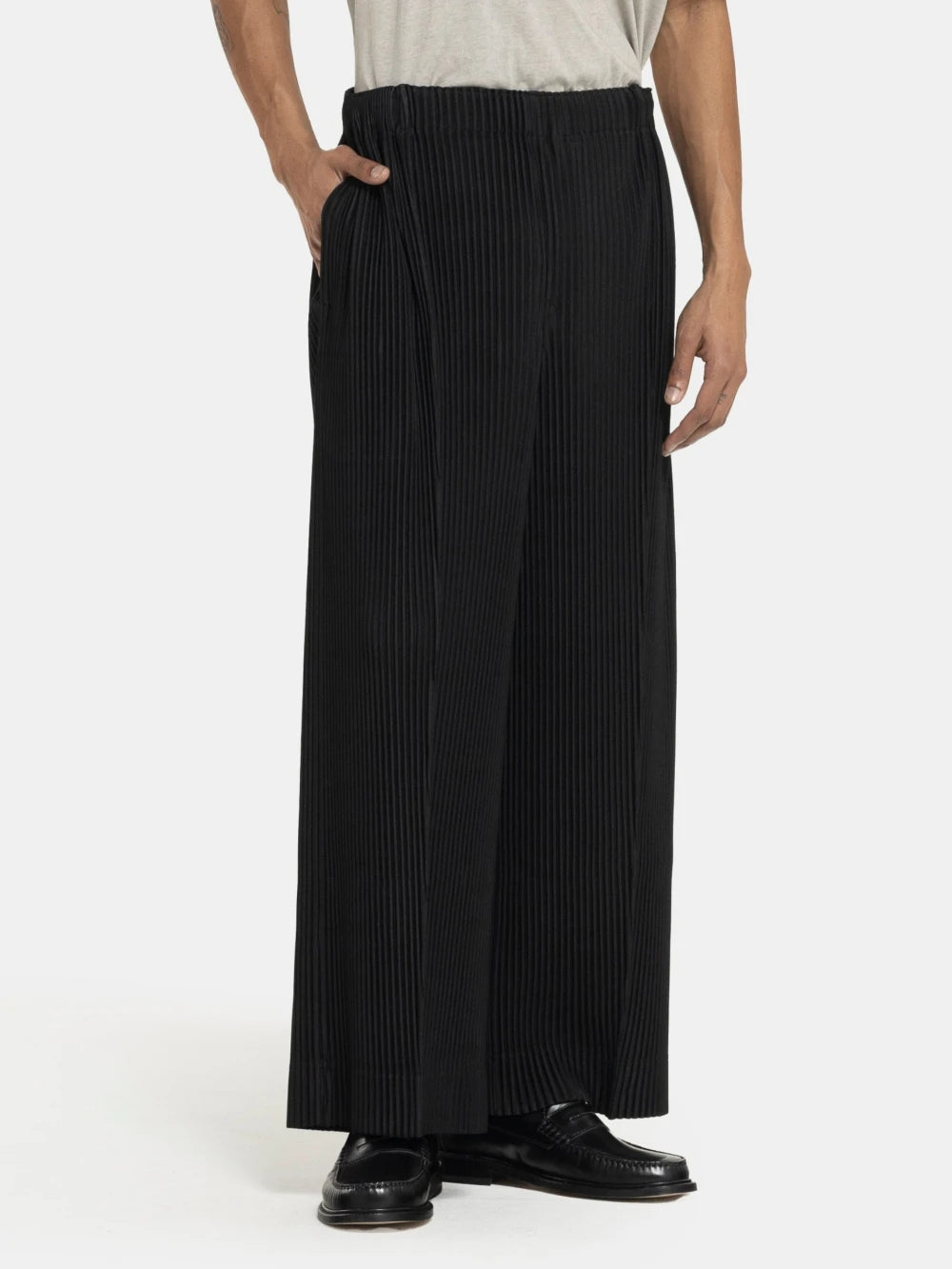 Available in a range of contemporary colors, the MiyakeFlow trousers cater to every taste and style preference. Whether you choose a classic black, a daring red, or a soft pastel, each pair is designed to make a statement. The elastic waistband ensures comfort without sacrificing the avant-garde aesthetic, making them suitable for prolonged wear.