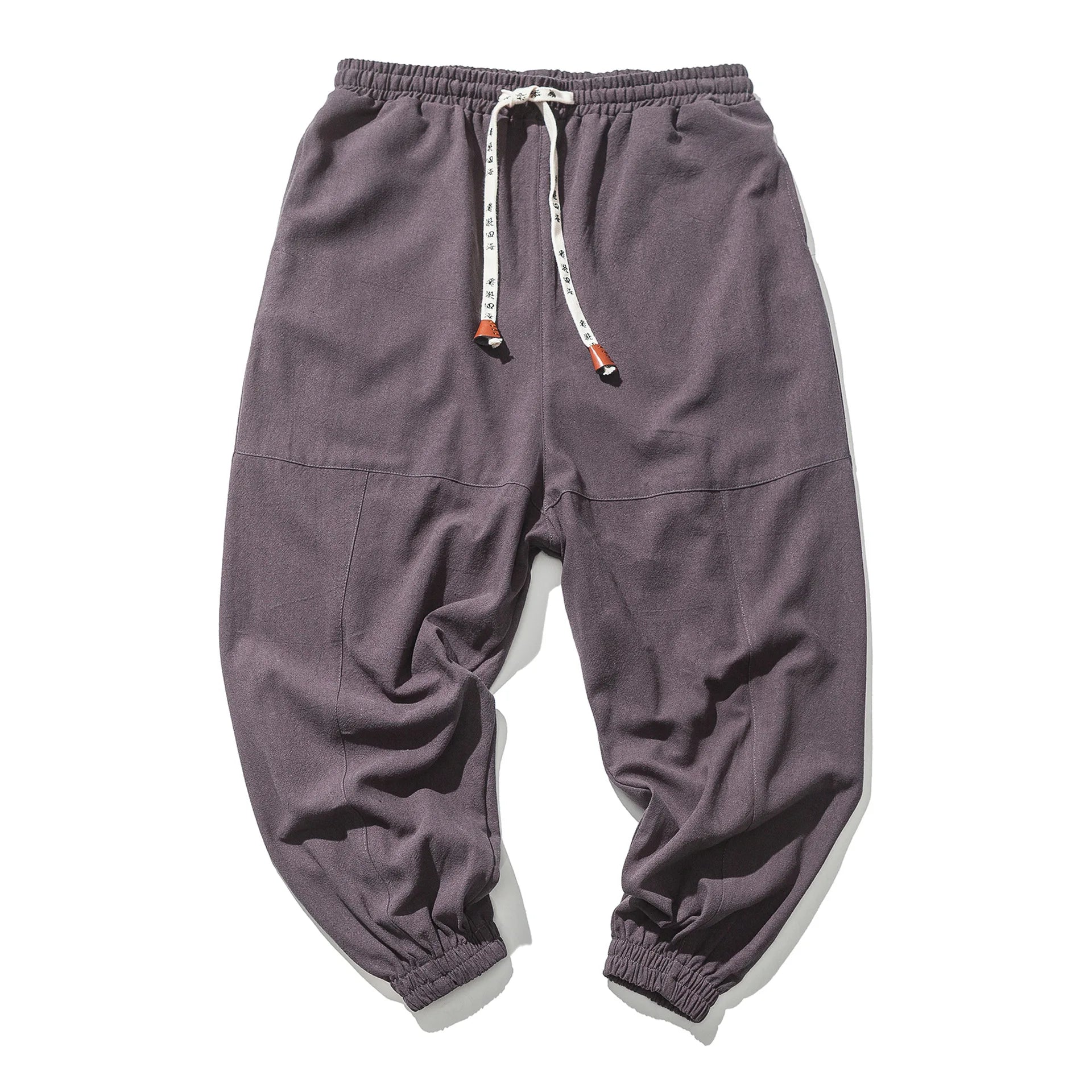 These loose cotton harem pants for men deliver a relaxed ankle-length fit in a midweight broadcloth fabric. Designed for casual spring and autumn wear, they combine an elastic waist and pleated front for comfortable mobility and a stable fit.