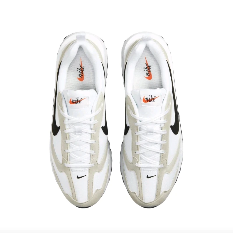 The shoes feature a lightweight, breathable upper in a sophisticated beige, white, and black colorway, making them versatile for both active days and casual wear. The sleek silhouette is paired with a plush foam midsole and the signature Max Air unit under the heel, ensuring every step feels smooth and supported. Whether you're hitting the track or walking through the city, you'll experience superior shock absorption and reliable stability.