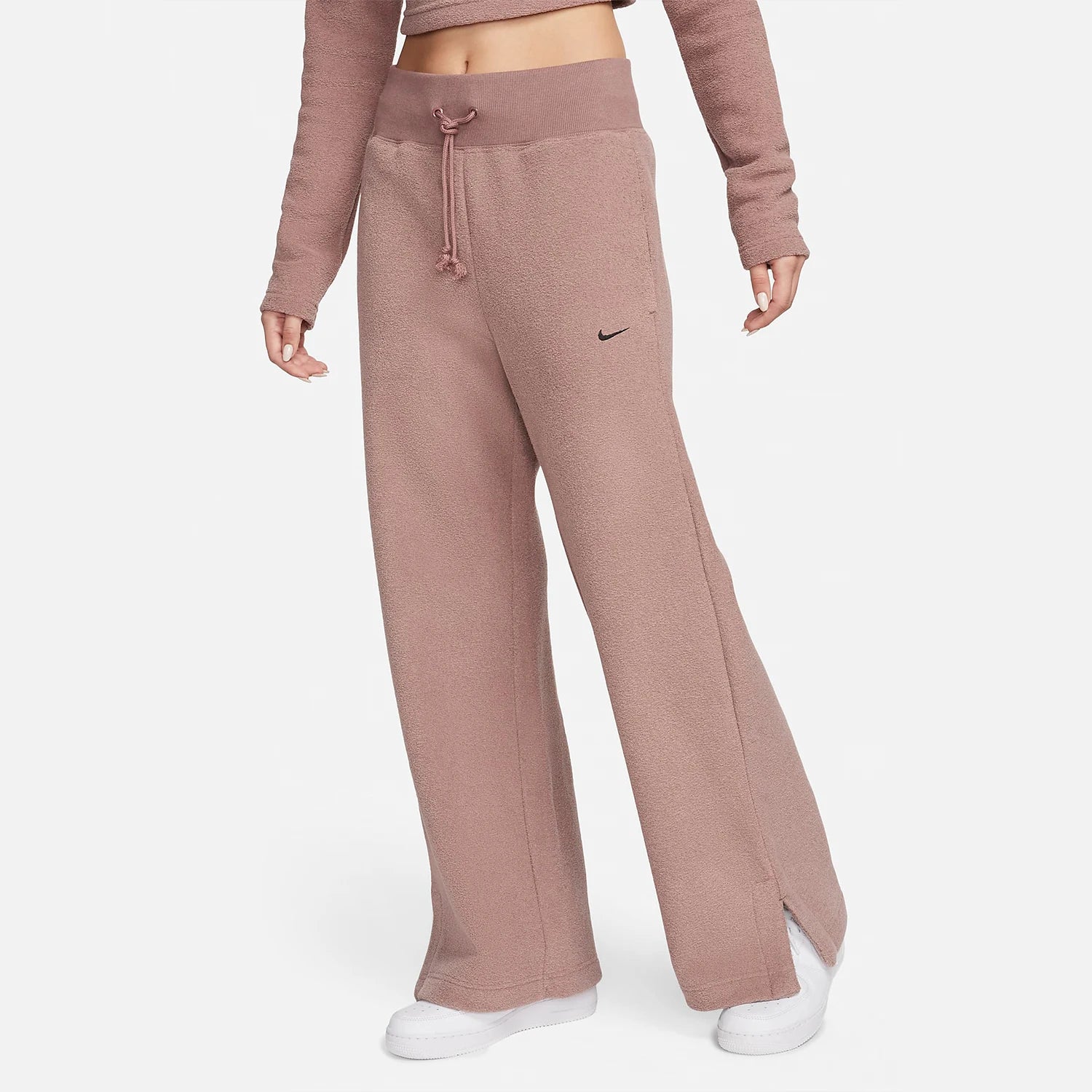 The Nike genuine 2024 New Women's High-Waisted Wide-Leg Fleece-Lined Loose-Fit Pants FN3623-208 are fleece-lined women's pants designed to provide warmth and a relaxed wide-leg silhouette for everyday wear.