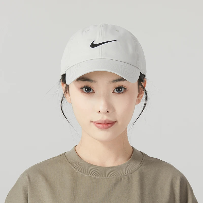This Nike unisex peaked cap model Fb5369-072 is a polyester sun hat designed to provide focused sunshade for running, fitness, sports and outdoor travel. The solid-pattern cap uses a tatting craft of weaving and a curved brim to shield your face while staying compact for transport.