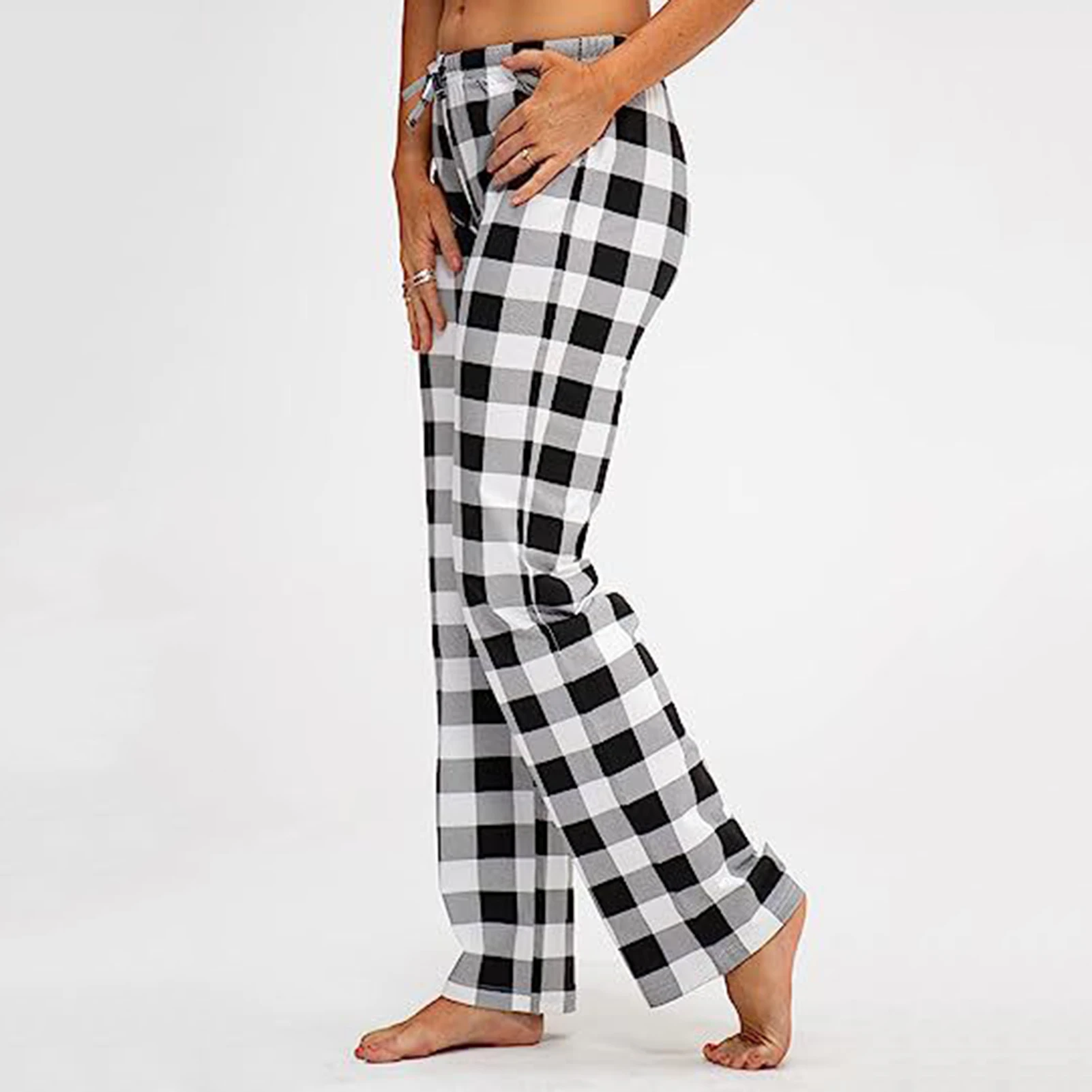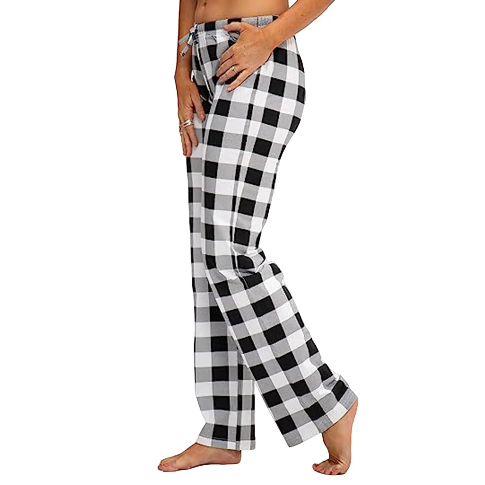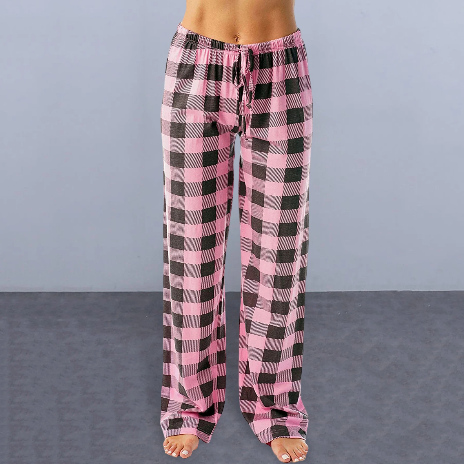 Chic Plaid Pattern: Elevate your loungewear collection with these stylish pajama pants adorned with a classic plaid design, adding a touch of sophistication and glamour to your casual wardrobe.