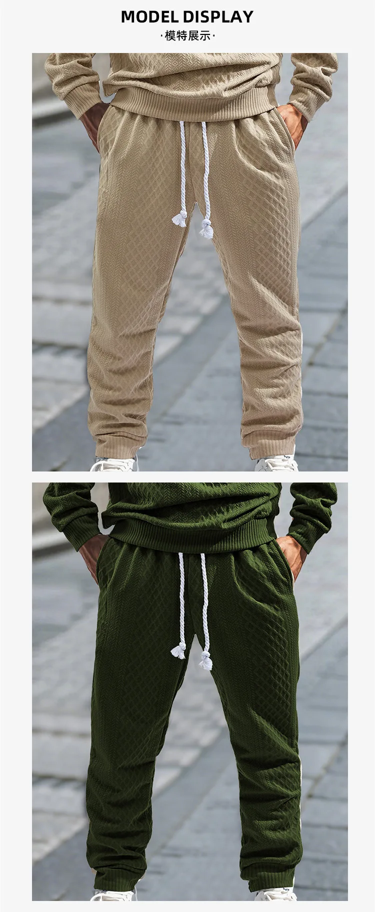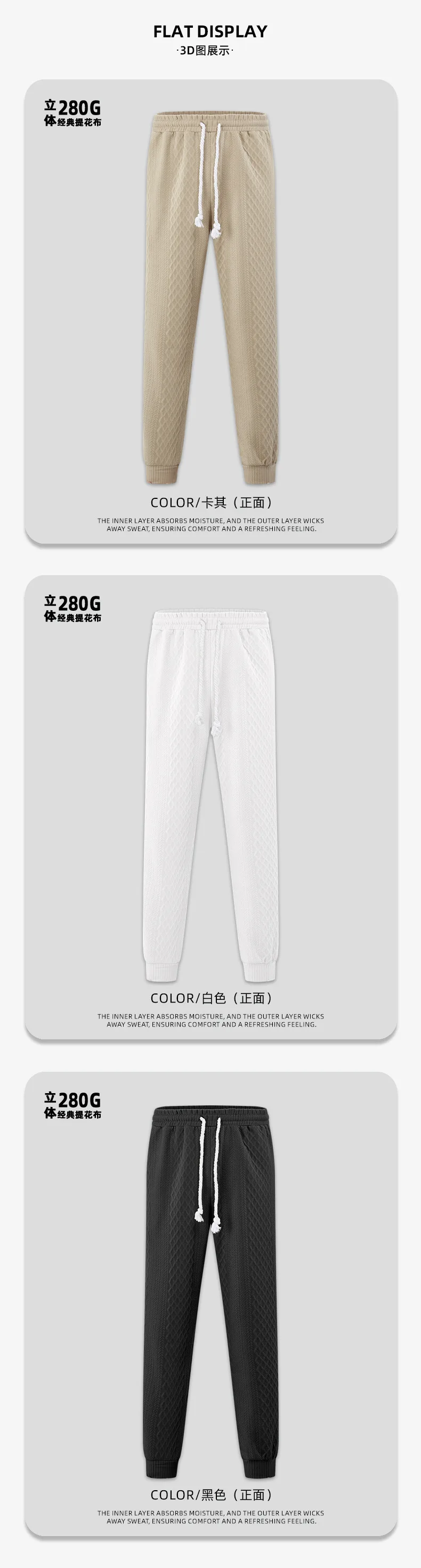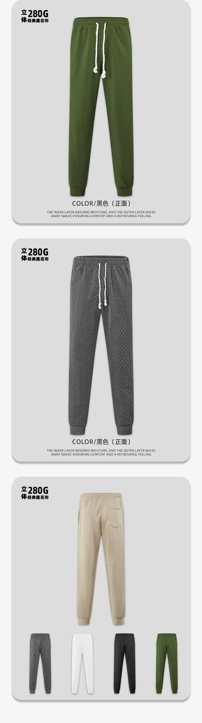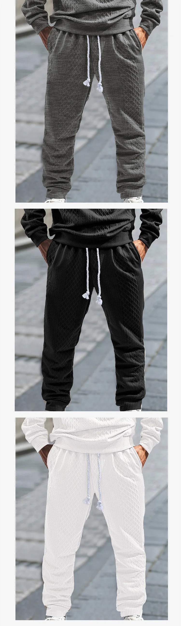 Step up your fashion game with our Spring and Autumn Men's Casual American Youth Sports Quick-drying Solid Color Jacquard Drawstring Trousers. Perfectly crafted for the modern man, these trousers combine style, comfort, and functionality, making them an essential addition to your wardrobe.