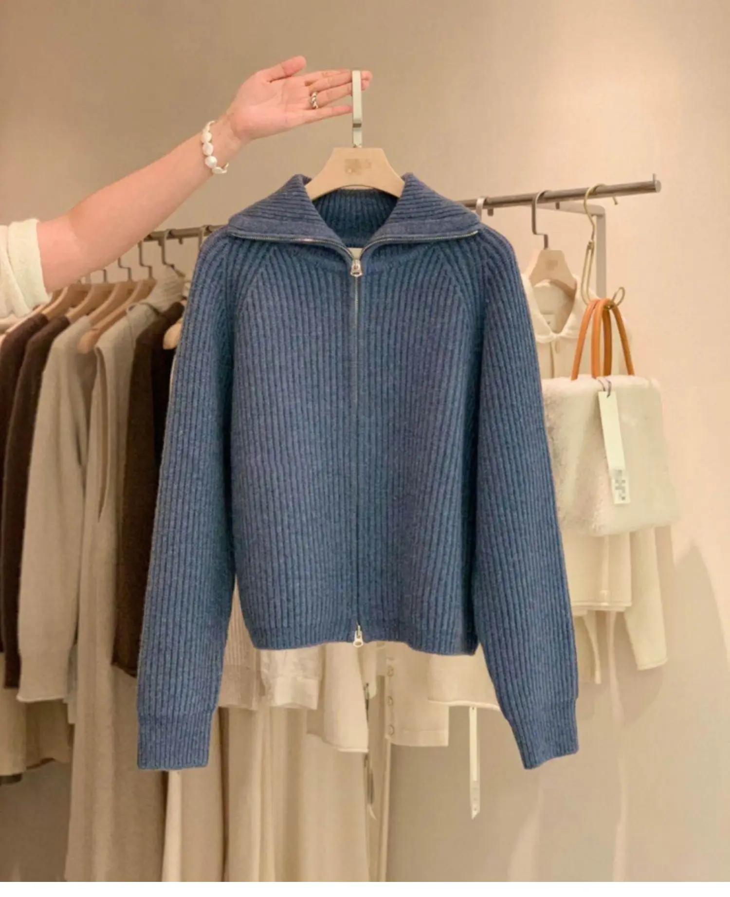 Our cardigan features a classic lapel design coupled with a contemporary zipper closure, offering both style versatility and convenience. The thickened knit not only adds to the cardigan's luxurious feel but also ensures that you remain snug and cozy, no matter the weather. Its loose fit is perfect for layering over your favorite outfits, creating a flattering silhouette that’s as functional as it is fashionable.